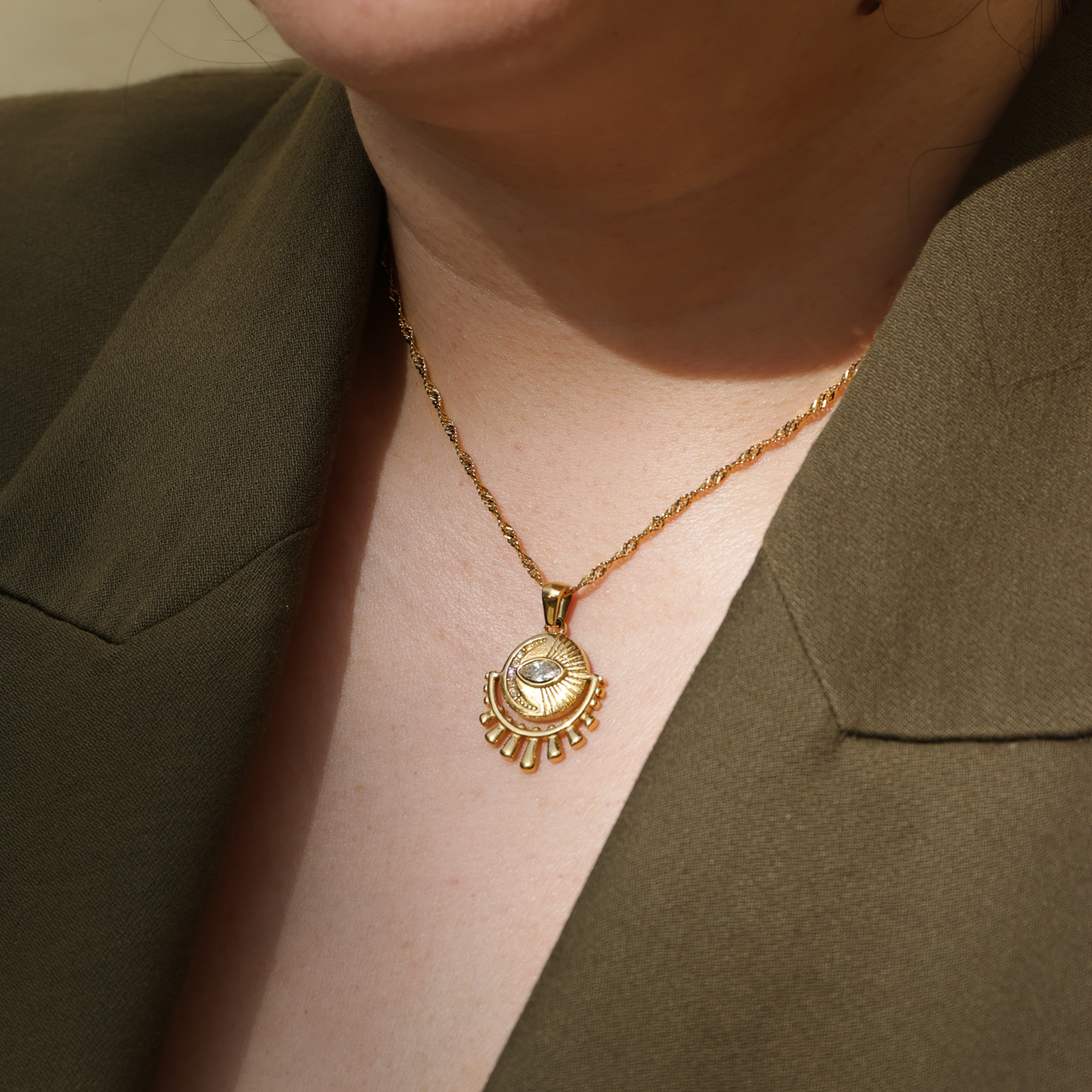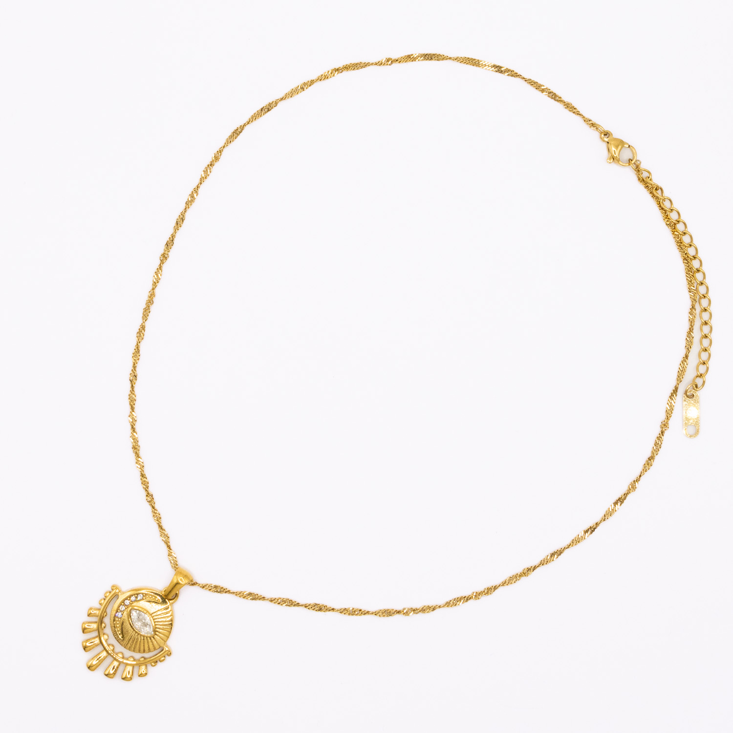 Infuse your style with a cheerful vibe with our Oval Zircon Eye Pendant Necklace. Whether you’re heading to a festival, a beach day, or just embracing a carefree mood, this piece is your go-to accessory for effortlessly brightening up your outfit.