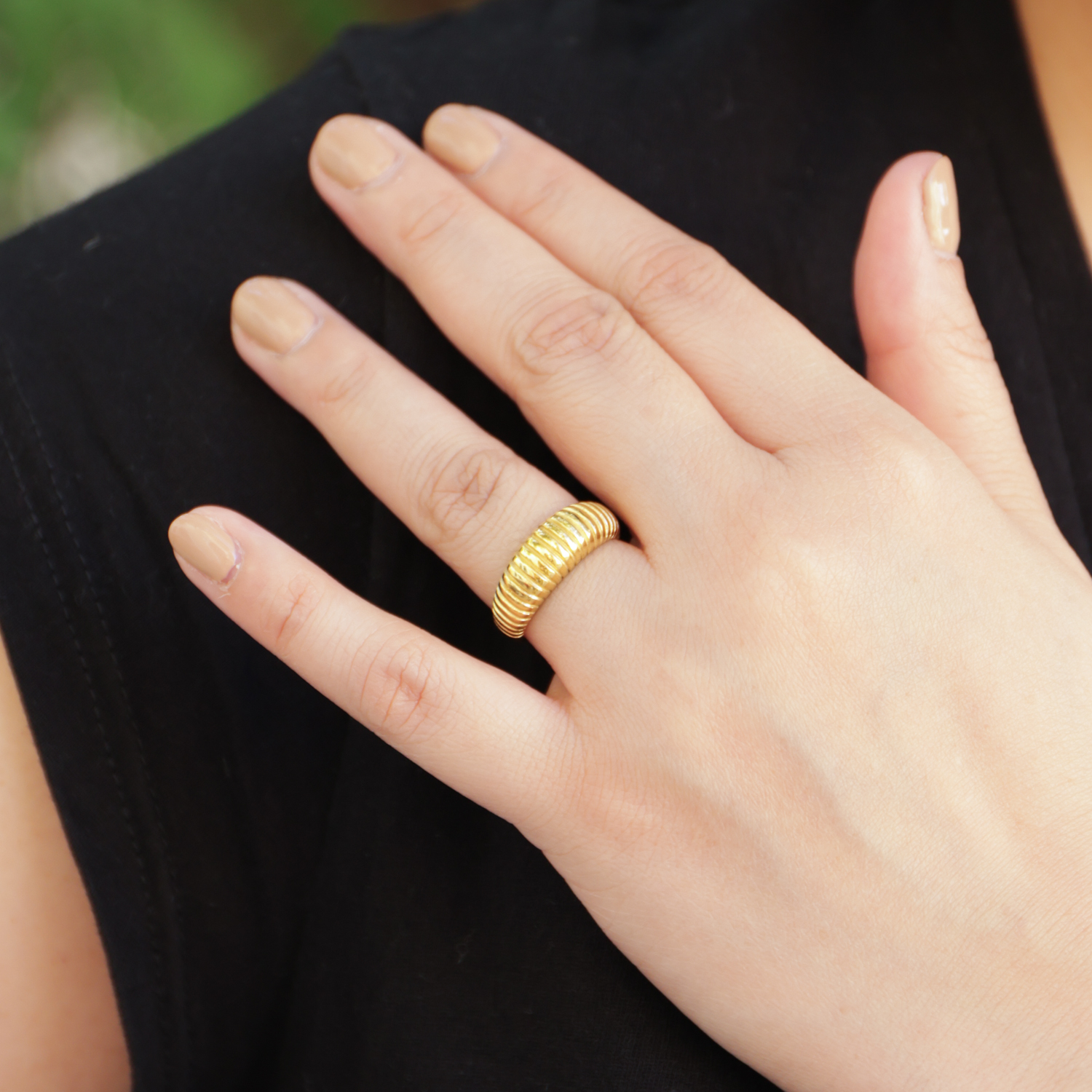 Indulge in bold sophistication with our Chunky Croissant Ring. This statement piece blends playful charm with chic elegance, making it the perfect addition to any style-savvy wardrobe.