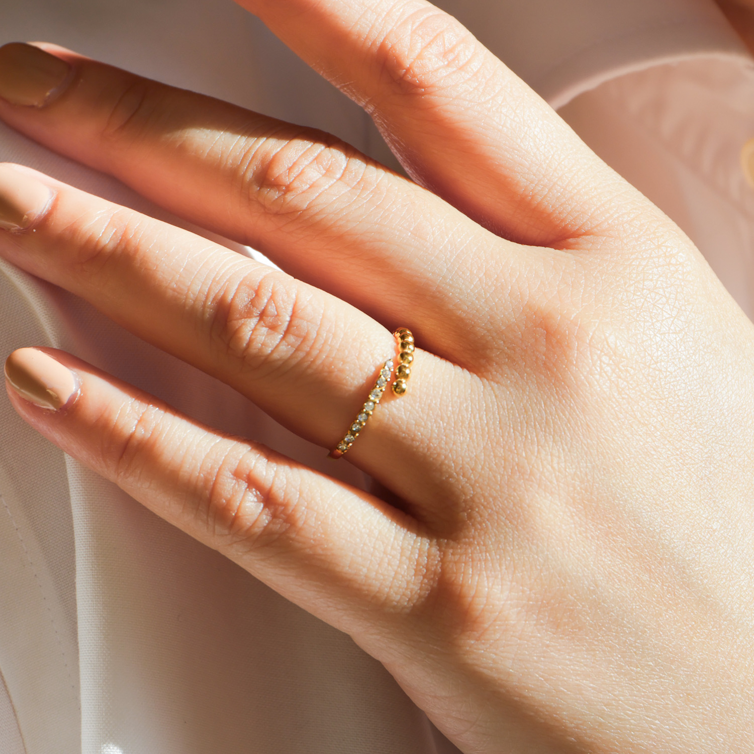 A little bubbly, a little bling—Our Bubble and Zircon Inlaid Ring is your one-size-fits-all ticket to everyday glam.