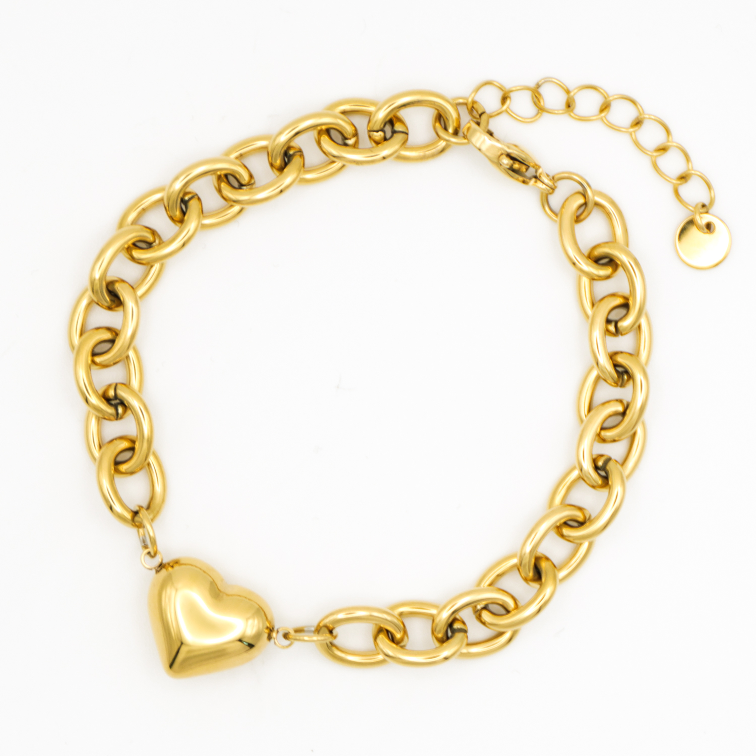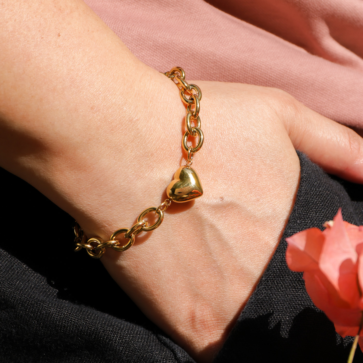 This whimsical bracelet, adorned with a delicate heart charm, adds a playful touch of charm and joy, effortlessly elevating your everyday style.